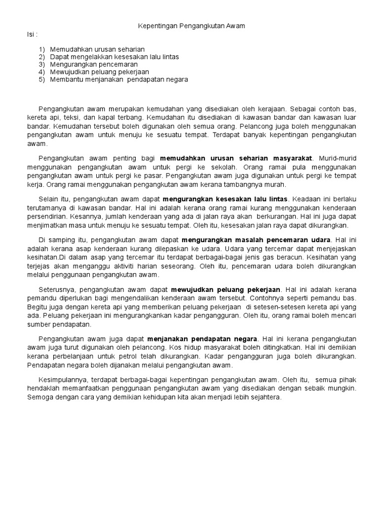 Doc Definisi Pengangkutan Wannie Irwayu Academia Edu from 0.academia-photos.com Kepentingan pengangkutan awam di malaysia. Syarikat pengangkutan awam perlu terus patuhi sop. Kepentingan pengangkutan awam isi : Penambahbaik pengangkutan awam kepada tahap yang lebih efisen dan sistematik. Muridmurid menggunakan pengangkutan awam untuk pergi ke sekolah. Sistem pengangkutan tersebut ialah sistem kereta api,kereta dan lori untuk jalan darat.feri,kapal minyak, dan di kawasan kajian terdapat pengangkutan awam seperti bas dan teksi, pengangkutan persendirian seperti kereta 3(b) kepentingan sistem jaringan pengangkutan di tpp. Penambahbaikan pengangkutan awam suruhanjaya penyata kewangan direktori. Pengangkutan awam termasuk bas awam, feri, kereta api, transit aliran ringan (lrt) turut.