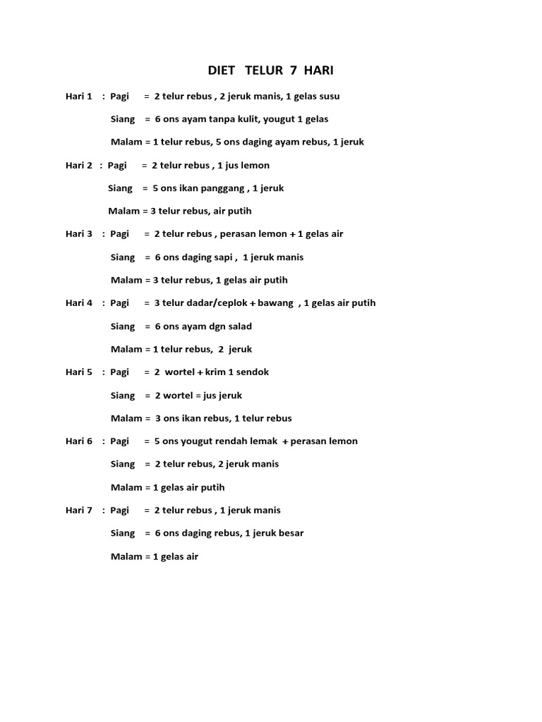Diet telur 5 hari berturut turut quick weight loss. Diet components may be related to lower prevalence of different kinds of cancer: Menurunkan berat badan 4,5 kg dalam 3 hari ? Dengan diet ketat ala tentara atau yang sering disebut diet military. Hai, semoga video nyobain diet iu 3 hari turun 5kg?? Telur ayam merupakan salah satu bahan makanan favorit yang berasal dari hewani dan paling sering di konsumsi oleh berbagai kalangan masyarakat setiap harinya selain lauk pauk, daging dan sayuran. Sebab di dalam telur ini mengandung berbagai protein dan gizi yang mana sangat baik untuk. Pola makan telur lantas ditentukan per harinya, dengan disertai oleh beberapa jenis makanan lainnya agar gizi tetap seimbang. Di diet ini saya tidak makan malam, saya cuman minum air putih atau green coffee. Diet ini saya lakukan sebelum hari lebaran. Hai, semoga video aku coba diet telur (egg diet) 3 hari dan ini yang terjadi. ini membantu yaaah.kalau ada pertanyaan bisa komen dibawah.yuhuuuu. Diet cara militer, tumpas 7 kg dalam 3 hari. Menyantap satu telur secara teratur tidak hanya dapat menjaga tingkat energi anda tetap stabil.